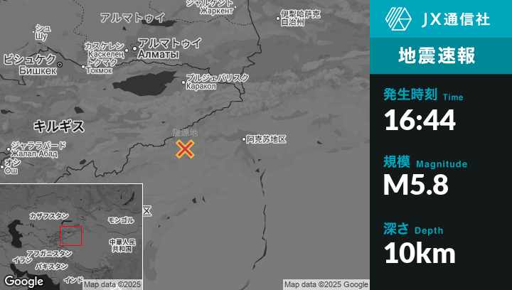 12月04日 16:44頃、中国のTumxukから北北西138kmの地点でM5.8の地震がありました。