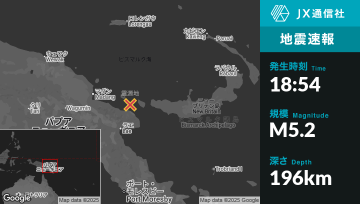 | 震源地 | パプアニューギニアのFinschhafenから北北西119kmの地点 |