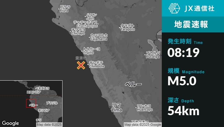 | 震源地 | ペルーのPuerto Santaから西50kmの地点 |